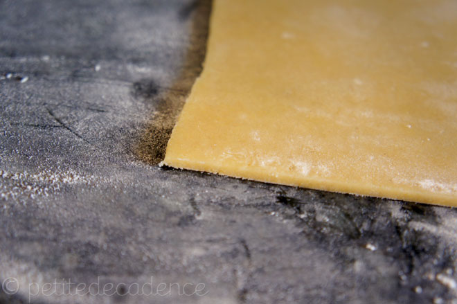 Butter and flour generously your tartlet molds or tins. Roll the dough out until it’s about 3-4 mm thick (you can work the dough in three batches, it’ll be easier). Place a mold over the dough and cut a square around it leaving about 1cm of free space from it’s widest point (the top). Place the square inside the mold, and using your thumbs only, press it carefully down and towards the sides of the tin. (The trick here is to be gentle with the dough. If it breaks, don’t worry and patch it down.) Using still your thumbs, cut against the edge of the mold, staying as close as possible to the rim. Repeat until all your tartlets are done. Prick them twice at the bottom with a fork.