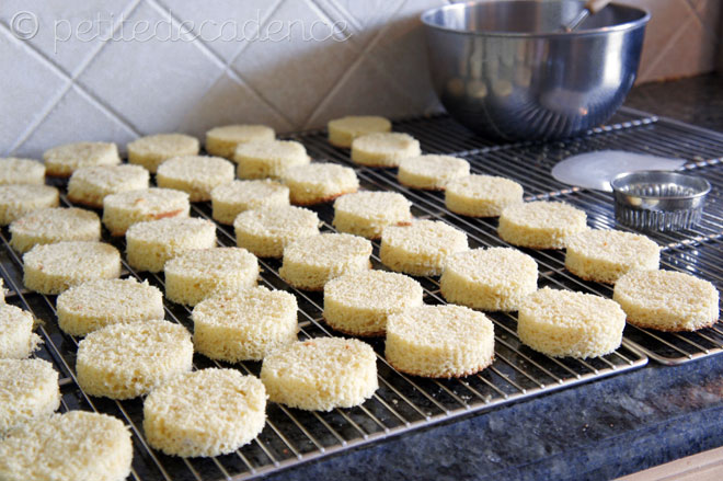 Poke both cakes with a toothpick, and using a pastry brush, imbibe it with the milk and cream mixture. Do this on both sides, on both cakes, two times. (Or more is you still have milk cream mixture left). The sponges should be soaked through and through, no dry spots left. Set aside.