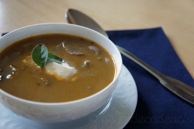 So today started as pretty rough day, even though the first thing I saw when I opened my eyes was raindrops, the wet bark on the trees outside my window, and a lot of birds. (My favorite sight to wake up to). I slept virtually nothing and had an appointment with my acupuncturist, aka my torturer. Anyhow, after muscle therapy, a nerve block, needles and laser therapy, I left nauseous, dizzy and barely able to stand up, with an apple in my hand kindly provided by one of the assistants. Once back home, I crashed on the floor in my room and dozed for about two hours, and then came back to consciousness with one thought in my mind; I need a pick me up. And so, seeing the pouring rain outside my window, got a strike of inspiration, and a chance at feeling better. This soup, due to the lack of vegetables in my fridge, has an onion base with a lot of broth, but its compensated by the delicious buttery and milky mushrooms you’ll add at the end. The result is very light, creamy, delicious smelling lentil goodness.